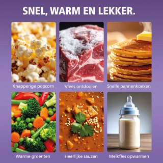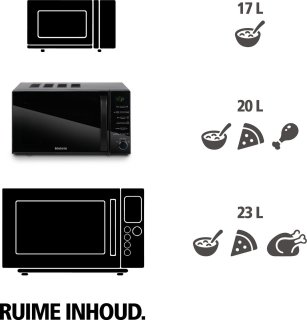 - Veelzijdig — magnetron, grill en combi-functie in één apparaat: ideaal voor opwarmen, grillen en gegratineerde gerechten.